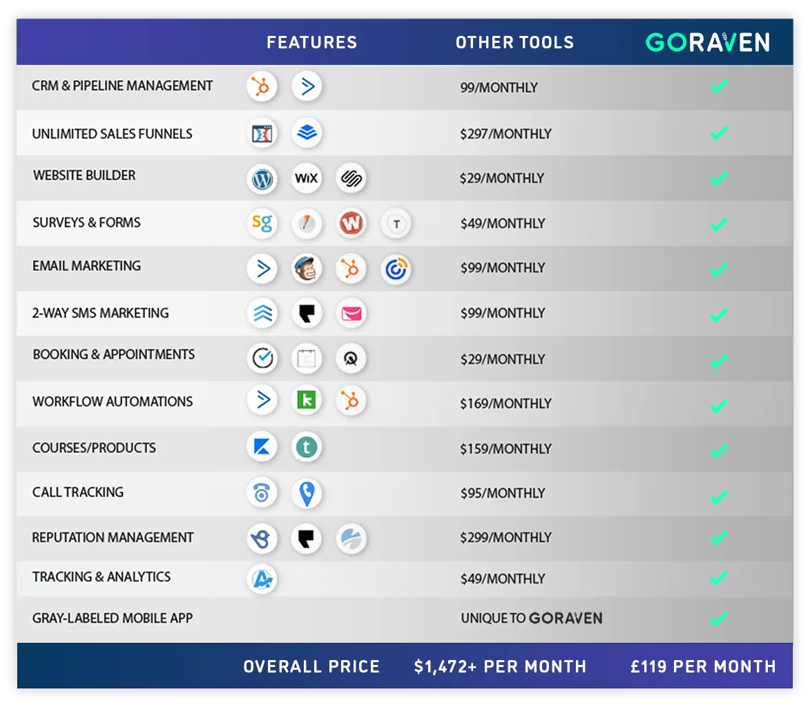 That's where GoRaven can help. We want to make it easier for you to grow your business, so we've brought everything you need under one roof.